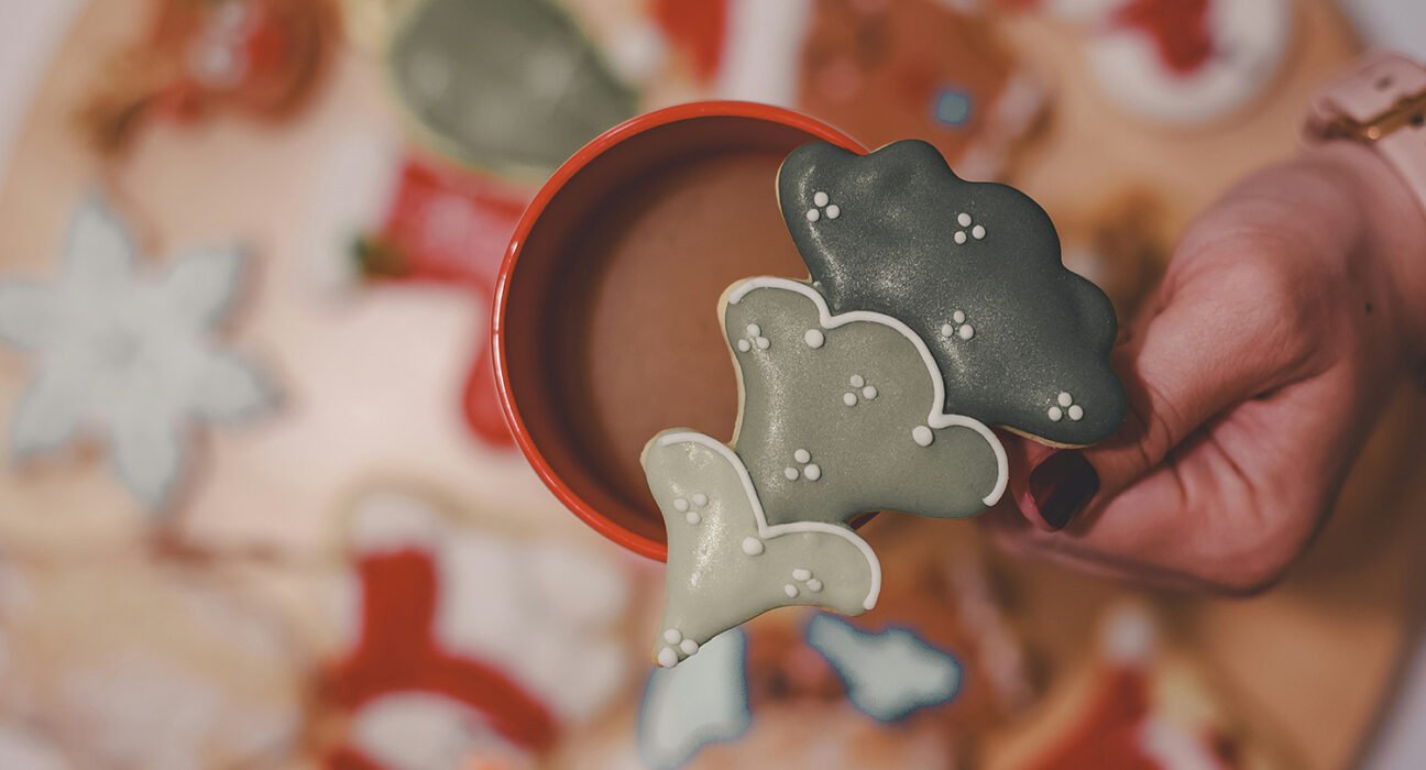 Instrucciones: Hornea las galletas en formas navideñas (árboles, estrellas, copos de nieve) y decóralas con glaseado y chispas.